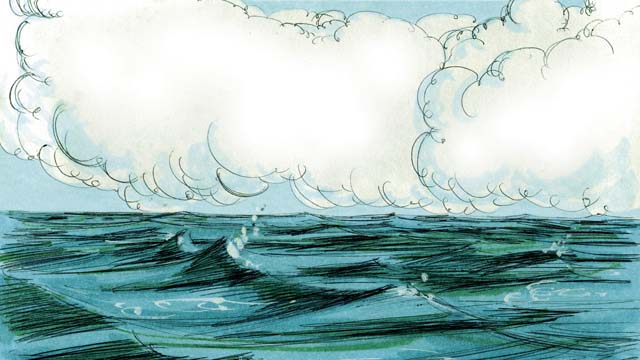 तब बारिश होना आरम्भ हुआ, और बारिश होती गई, होती गई। बिना रुके चालीस दिन और चालीस रातों तक बारिश होती रही। सारे संसार की हर एक चीज, यहाँ तक कि ऊँचे से ऊँचे पर्वत भी पानी में डूब गए।